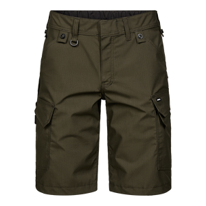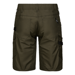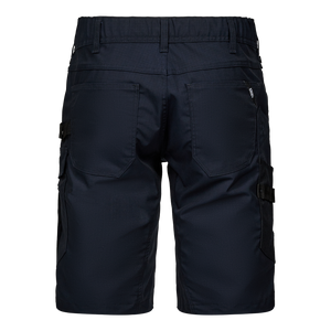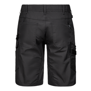 Bei der Entwicklung dieser Shorts wurde besonderer Wert auf hohe Funktionalität, Strapazierfähigkeit und höchsten Tragekomfort gelegt. Sie ist aus Ripstop-Material mit 2-Wege-Stretch gefertigt, um sowohl Flexibilität als auch Haltbarkeit zu gewährleisten. Ein verdeckter Knopfverschluss schützt Oberflächen vor Kratzern, und ein elastischer Gummizug am Rücken sorgt für einen optimalen Sitz, auch bei starker körperlicher Bewegung. Zahlreiche praktische Taschen sorgen für ausreichend Stauraum, darunter eine Oberschenkeltasche mit Reißverschluss und eine separate Handytasche auf dem linken Oberschenkel. Eine verstärkte Zollstocktasche und ein Hammerriemen erleichtern die Aufbewahrung von Werkzeug. Außerdem sind Knöpfe zur schnellen Befestigung von Holstertaschen angebracht. Ein praktischer Riemen mit D-Ring ermöglicht es, z. B. einen Ausweis sicher und einfach zu befestigen. Die Shorts sind für die Industriewäsche geeignet, so dass sie auch bei häufigem Gebrauch leicht zu pflegen sind. Anzahl der recycelten Plastikflaschen: 8